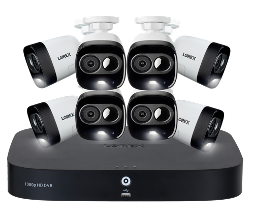 Este conjunto de cámaras de seguridad HD analógicas de 1080 p de Lorex satisface fácilmente las exigentes necesidades de la seguridad actual. Este potente sistema graba con una resolución HD de 1080 p que produce secuencias de vídeo visualmente precisas. Este sistema también cuenta con disuasión activa, detección de movimiento avanzada, compatibilidad con hogares inteligentes, almacenamiento de vídeo local y mucho más, lo que le permite combinar la seguridad activa con la comodidad del control de voz de manos libres.